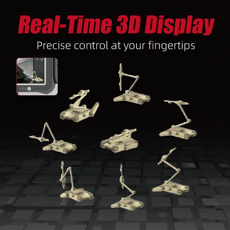 Étant donné que les robots de déminage opèrent souvent hors de la ligne de mire pendant les missions, les informations en temps réel sur les angles et les positions spatiales des articulations du robot sont cruciales pour les opérateurs. Le REOD400 utilise des liaisons à grande vitesse et une technologie informatique avancée pour non seulement obtenir un retour d'information en temps réel sur les informations d'état du robot, mais aussi pour employer une technologie d'affichage virtuel 3D de pointe pour l'affichage en temps réel à distance de l'état 3D du robot. Cela donne au robot l'impression d'être "à portée de main" même lorsqu'il est "loin", ce qui permet un fonctionnement plus intuitif.