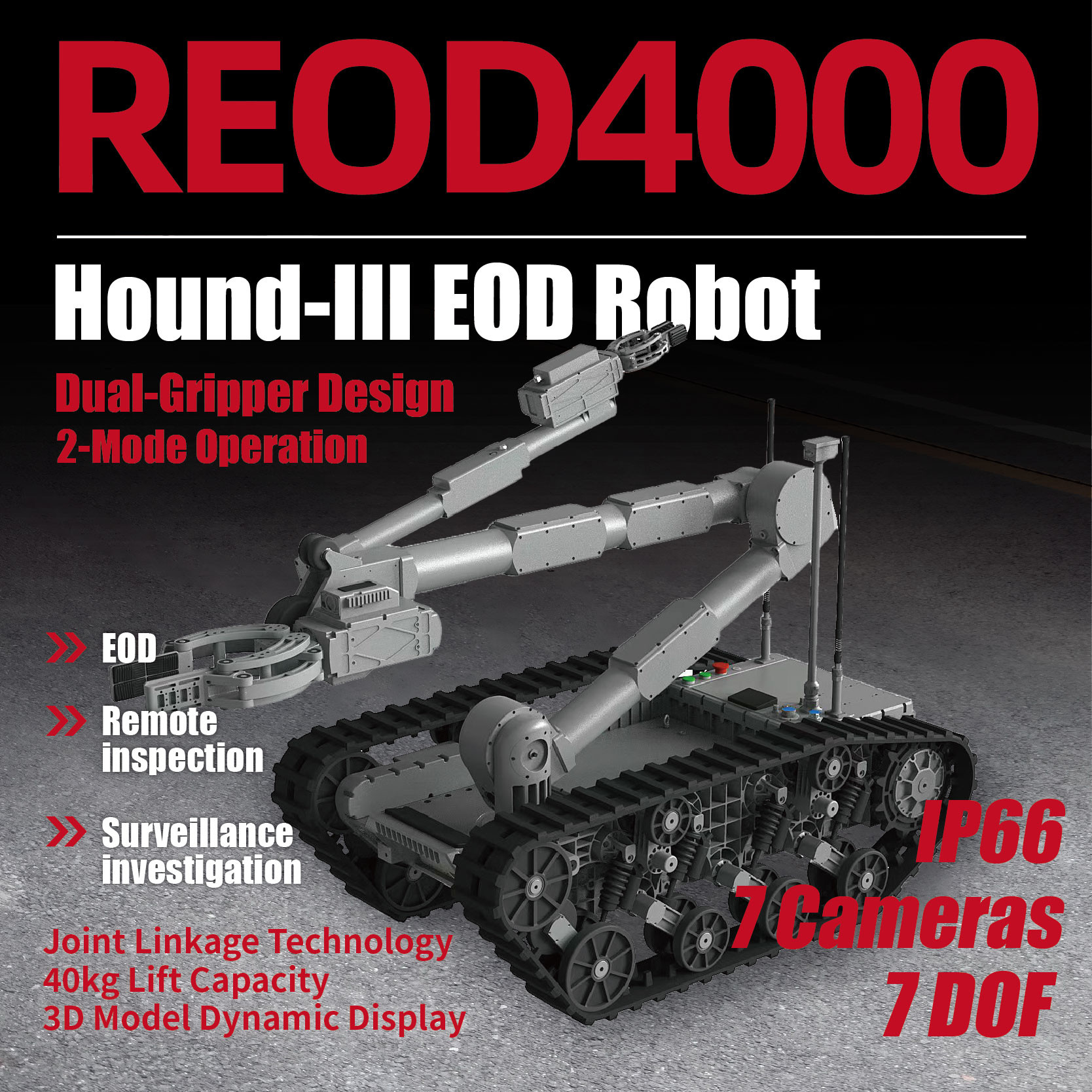 Le REOD4000 a des dimensions de 1600 mm × 850 mm × 1300 mm (entièrement rangé) et un poids de ≤ 350 kg, ce qui assure à la fois sa capacité et sa mobilité.un écart d'obstacle ≥ 400 mm, et une inclinabilité de ≥ 45°, offrant une maniabilité et une adaptabilité supérieures sur divers terrains.enquêter sur les dangers potentiels, et exécuter efficacement les tâches d'élimination, en minimisant les risques pour le personnel.